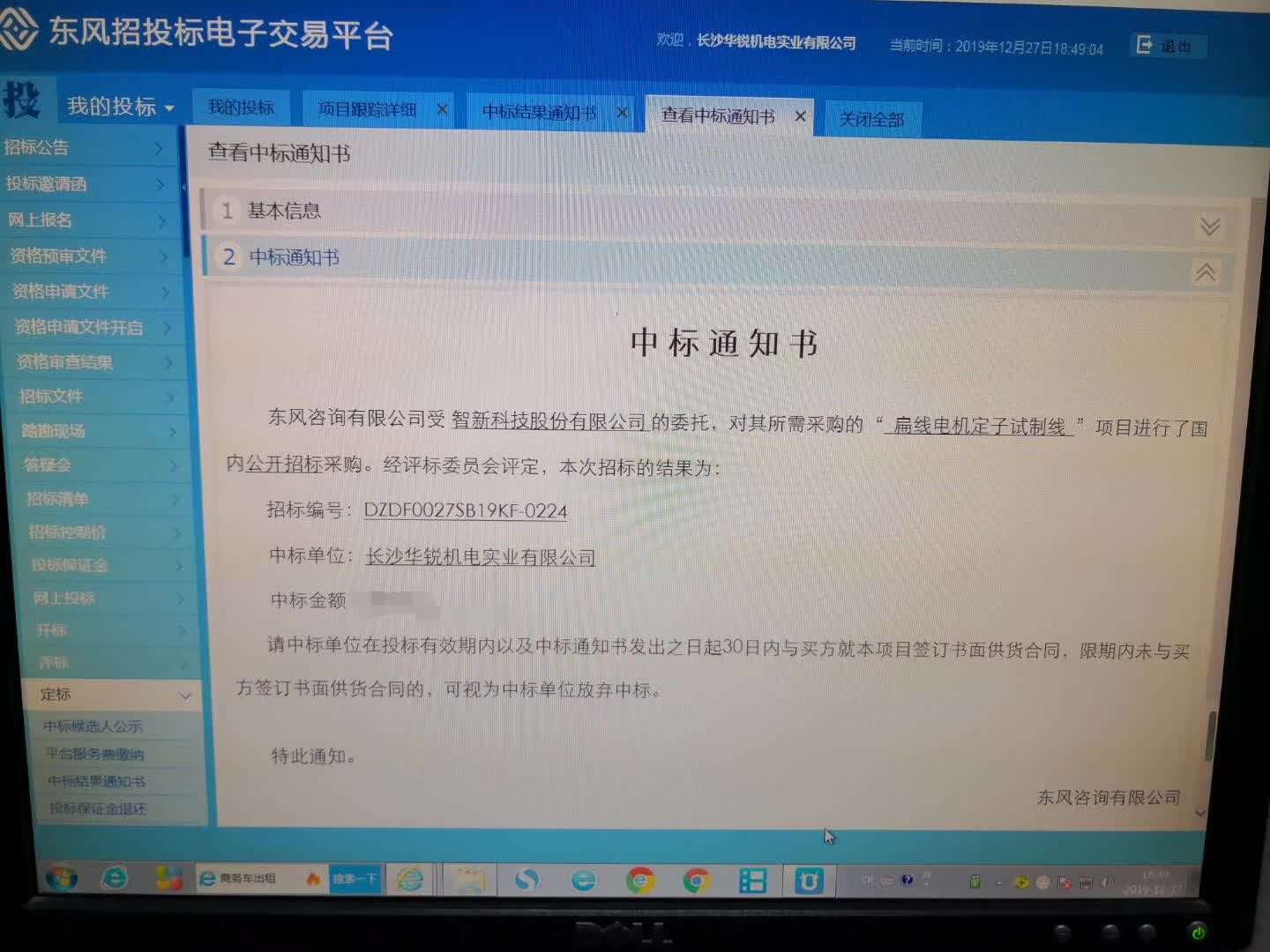 中標項目:新能源汽車扁線發卡電機定子自動化生產產線項目:東風汽車-----智新科技股份有限公司